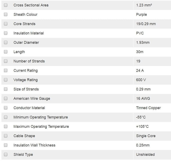 Alpha Wire Purple Hook Up Wire 1.23 mm² CSA  600 V 24 A 30m- New in Box -Brand New, unused, still in OEM packaging -Check out the images for more product details Product details Manufacturer: Alpha Wire Manufacturer Part Number:...View more