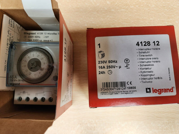 ANALOG DAILY TIME SWITCH HORIZONTAL DIAL 16A NO RESERVE 3MOD - LEGRAND 4128 12PRODUCT DETAILS: Analogue time switch daily program horizontal 1 channel 5mn ±/day min. 15mn 16A 3 module Technical Specifications Analogous time switch for distribution board Mounting method...View more