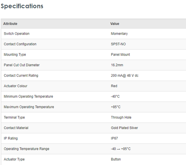 APEM IRC 3F462 Momentary Push Button Switch, SPST-NO, Panel Mount, IP67, Red