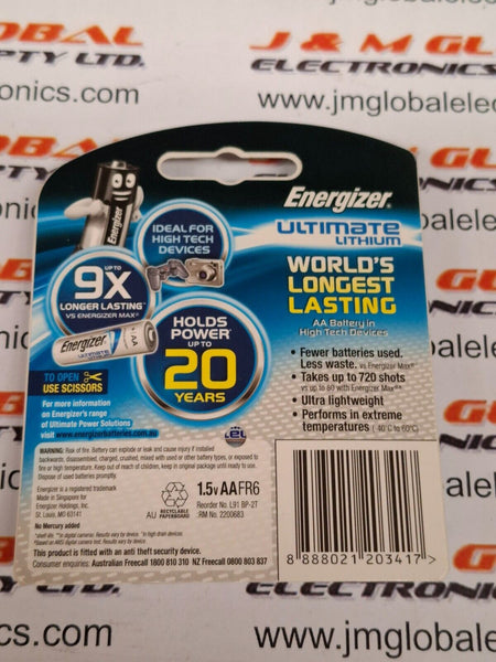 BATTERY LITHIUM "AA" 2PACK - ENERGIZER L91BP-2TPRODUCT DETAILS: 2-pack of Energizer Ultimate Lithium AA batteries The world’s longest lasting AA battery Leak-proof construction protects the devices you love (based on standard use) Powers your most critical devices—ideal for your smart...View more