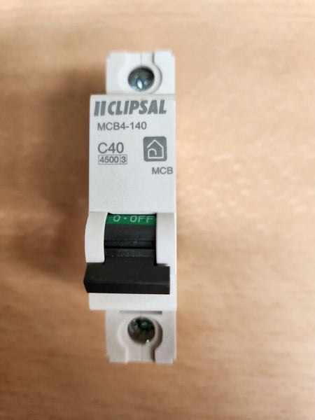 Clipsal 40 Amp Miniature Circuit Breaker MCB C Curve 1 Pole 4.5kA - MCB4-140PRODUCT DETAILS: Clipsal 40 Amp C Curve MCB 1 Pole 4.5kAThe 4.5kA breaking capacity of these MCBs makes them ideal for residential applications. This range has C-Curve...View more