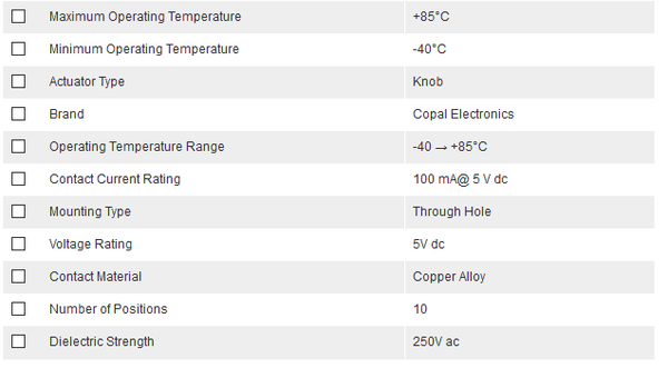 Copal Electronics SC-2130 10 Way Through Hole Rotary Switch, Knob Actuator - New (1 PACK OF 10PCS) - Brand new item, still in OEM packaging  - Check out the images for more product details Product details:- Actuator Type                 KnobBrand                              Copal...View more