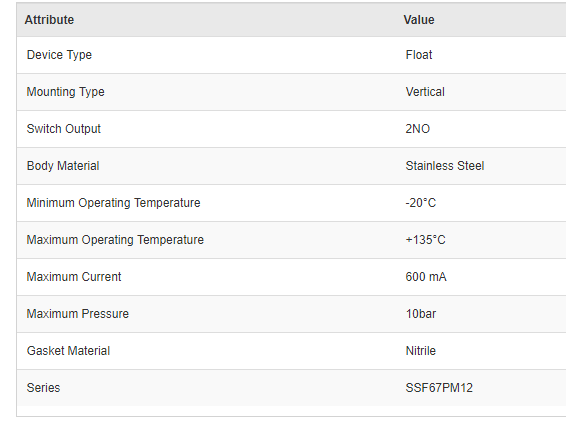 Cynergy3 SSF67S0A200PM12 Series Vertical Mounting Float Switch 2NO Output - Brand new item, still in OEM packaging  - Check out the images for more product details Product details These SSF67 series floats from Cynergy 3 have been designed to provide...View more