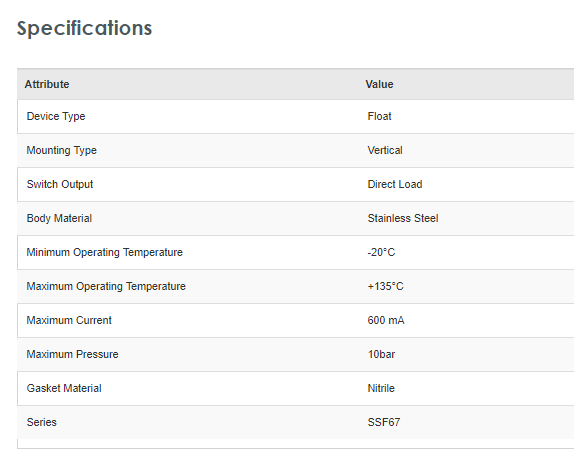 Cynergy3 Series Vertical Mounting Level Switch Direct Load Output - SSF67A25B150