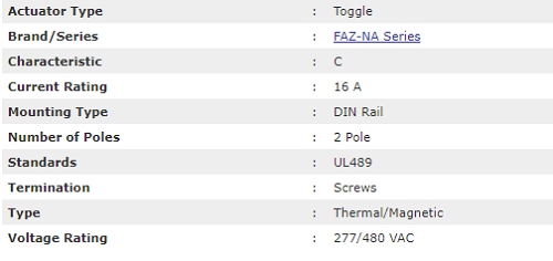 Eaton DIN Rail Mount Circuit Breaker, 16A, 2 Pole 277/480 VA - FAZ-C16/2-NA