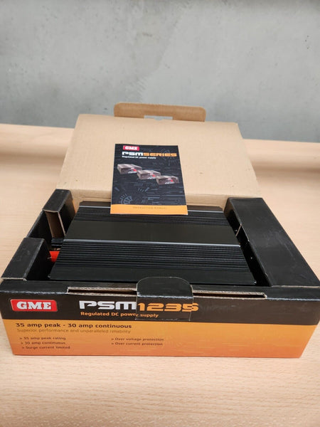 GME PSM1235 SWITCH MODE DC POWER SUPPLY - 35 AMP PEAK   -Brand new item, still in OEM packaging  -Check out the images for more product details   Product details: The GME PSM Series of Regulated Power Supplies offer quality...View more