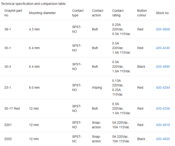 Grayhill 2202 Single Pole Single Throw (SPST) Momentary Push Button Switch 12.3mm, Panel Mount - New - Brand new item, still in OEM packaging  - Check out the images for more product details Product details:- Grayhill RangeA range of push...View more