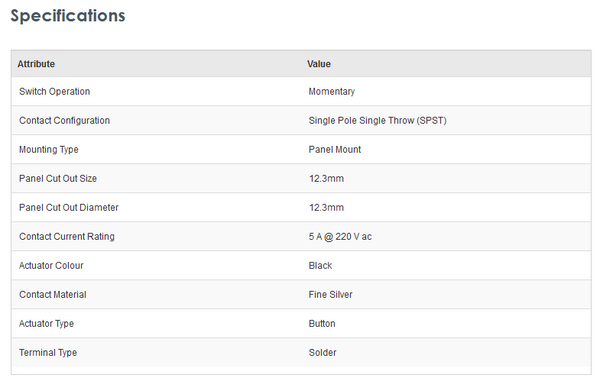 Grayhill Single Pole Single Throw (SPST) Momentary Push Button Switch - 2202