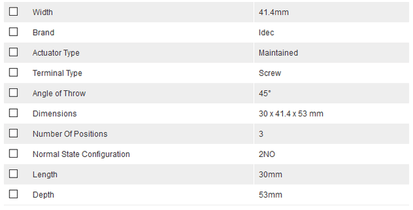 Idec 3 Position 45° Rotary Switch, Maintained Actuator - CW1S-3E20