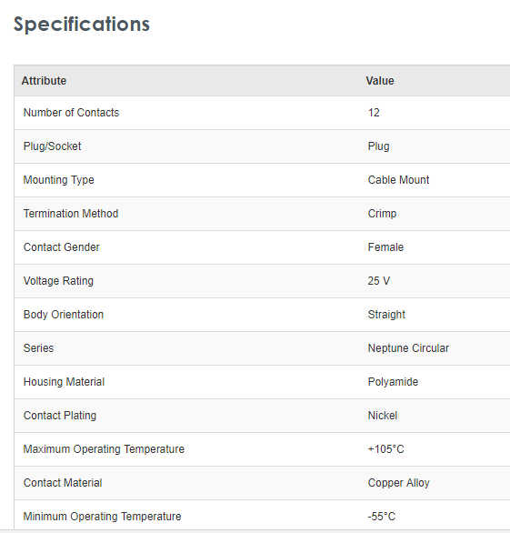 ITT Cannon 192900-0236 Neptune Circular Series, 12 Pole Cable Mount Housing Plug, For Use With Female Contacts - Brand new item, still in OEM packaging  - Check out the images for more product details Product details From ITT Cannon, the...View more