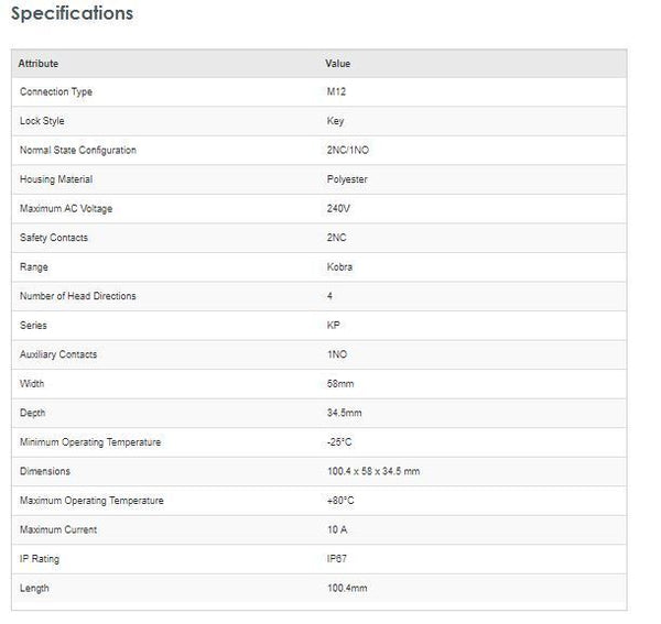 KP Safety Interlock Switch, Polyester, 2NC/1NO-New - Brand new item, still in OEM packaging  - Check out the images for more product details Product details: IDEM Kobra Plastic Safety Interlock Switches The Kobra KP series from IDEM are tongue operated...View more