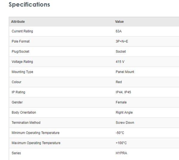 Legrand 0 536 04,  HYPRA Series, IP44, IP45 Red Panel Mount 3P+N+E Right Angle Industrial Power Socket, Rated At 63A, 415 V - Brand new item, still in OEM packaging  - Check out the images for more product details Product...View more