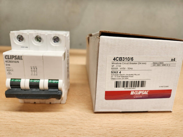 Clipsal 4CB310/6 - MAX 4 - Mcb 3P 10A C curve 6000 A 415 V   -Brand new item, still in OEM packaging  -Check out the images for more product details   Product details Clipsal 4CB310/6 - MAX 4 - Mcb...View more