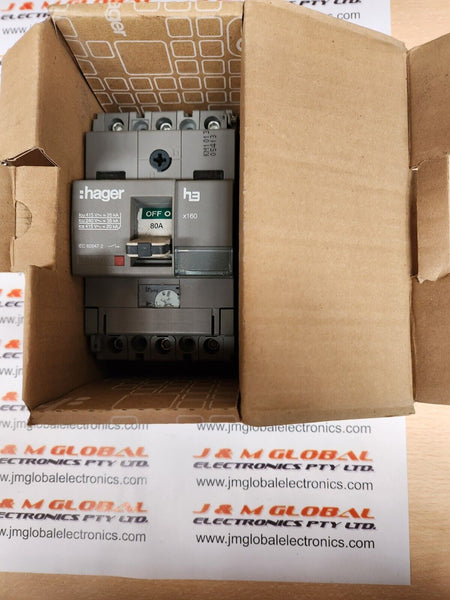 MCCB 80A 3P 25KA TM ADJ/FIX X160 FRAME - HAGER - HHA080U