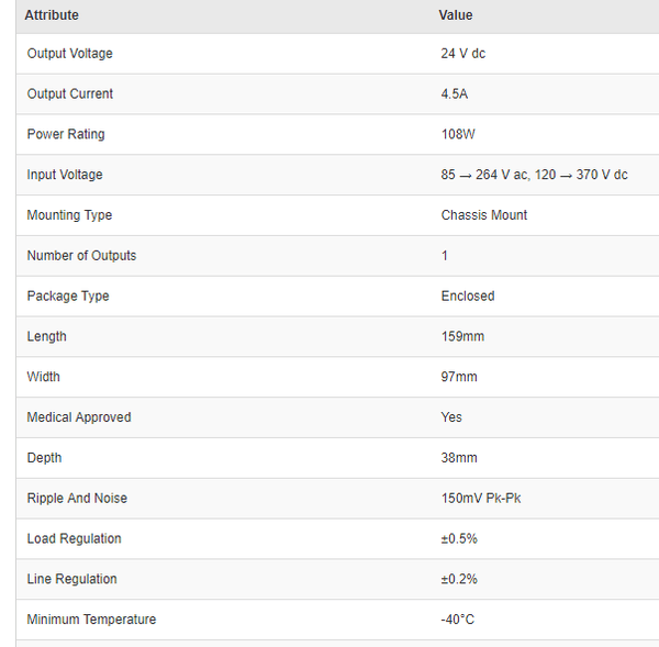 Mean Well MSP-100-24 108W Embedded Switch Mode Power Supply SMPS, 4.5A, 24V dc Medical Approved - Brand new item, still in OEM packaging  - Check out the images for more product details Product details The Mean Well MSP-100 is a...View more