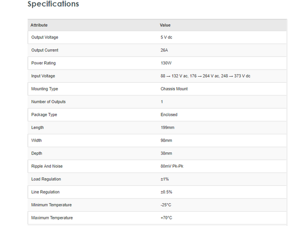 Mean Well RS-150-5 130W Embedded Switch Mode Power Supply SMPS, 26A, 5V dc - Brand new item, still in OEM packaging  - Check out the images for more product details Product details High efficiency, long life and high reliability Miniature...View more