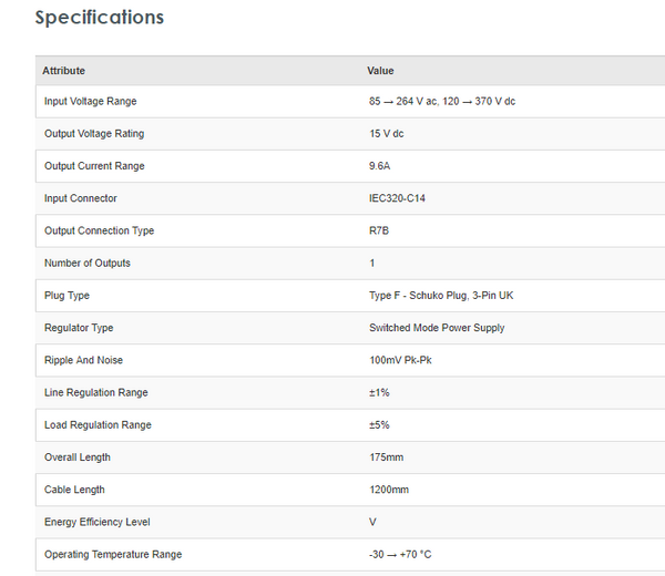 Mean Well GS160A15-R7B 15V DC Power Supply with Schuko Plug - Brand New Item Condition: Brand new in original OEM packaging, ensuring the highest quality and reliability for your electronic needs. Product Details: Model: GS160A15-R7B Output Voltage: 15V DC Output...View more