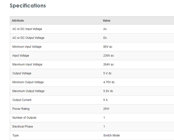 MEANWELL DR-4505 Switch Mode DIN Rail Panel Mount Power Supply, 25W, 5V dc/ 5A - Brand new item, still in OEM packaging  - Check out the images for more product details Product details A range of single phase DIN Rail...View more