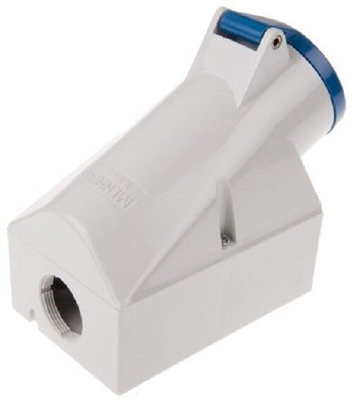 Mennekes 1421 IP44 Blue Wall Mount 2P+E Right Angle Industrial Power Socket, Rated At 32A, 230 V - Brand new item, still in OEM packaging  - Check out the images for more product details Product details Wall Mounted Receptacles From...View more