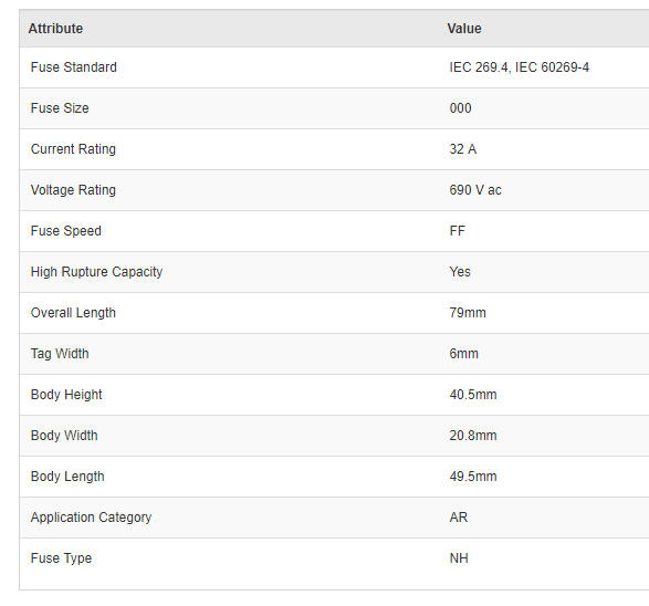 Mersen Y320043C 32A 000 FF NH Centred Tag Fuse, aR, 690V ac - Brand new item, still in OEM packaging  - Check out the images for more product details Product details Fuses with high breaking capacity to protect power semi-conductors....View more
