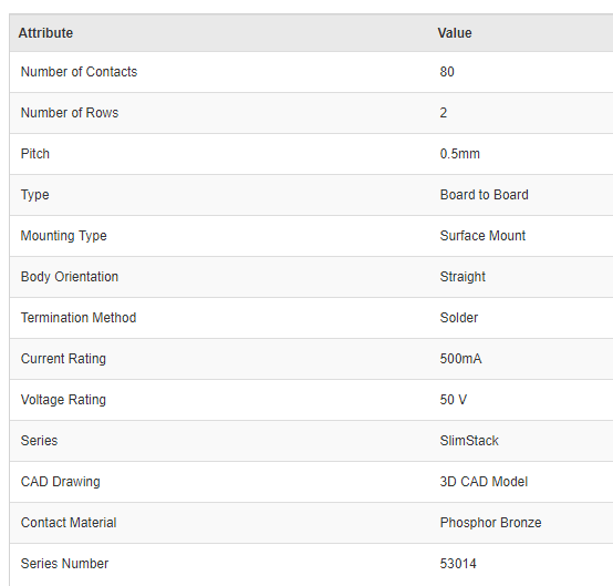 Molex 52991-0808 Series 53014 Series Number 0.5mm Pitch 80 Way 2 Row Straight PCB Socket, Surface Mount ( Pack of 5 pcs) - Brand new item, still in OEM packaging  - Check out the images for more product details Product...View more