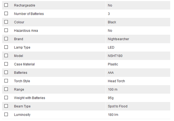 Nightsearcher LED Head Torch, 180 lm - HT180 (NEW 3 x AAA Alkaline)