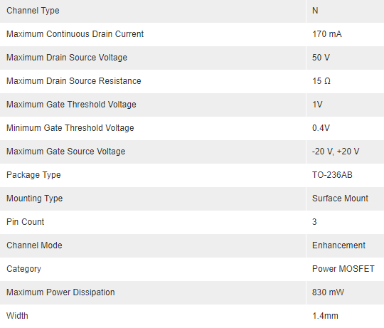 NXP N-channel MOSFET Transistor, 170 mA, 50 V, 3-Pin SOT-23 - BSN20,215