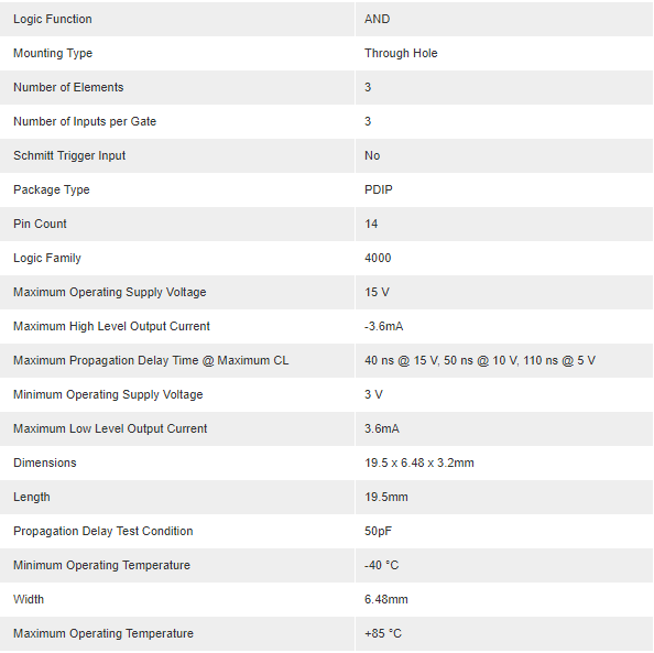 NXP Triple 3-Input AND Logic Gate 14-Pin PDIP (Pack of 10 PCS) - HEF4073BP-652