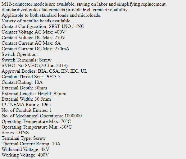 Omron D4NS-1AF Labor-Saving Multi-Contact Safety Door Switch (PLC AB8) - New - Brand new item, still in OEM packaging  - Check out the images for more product details Product Details: M12-connector models are available, saving on labor and simplifying replacement....View more