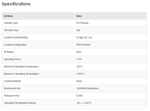 Omron SPDT-NO/NC Pin Plunger Subminiature Micro Switch 5A @ 125V AC - SSG-5T