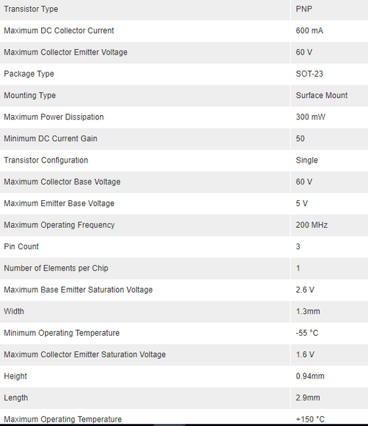 ON Semi MMBT2907ALT1G PNP Bipolar Transistor, 600 mA, 60 V, 3-Pin SOT-23 - Brand new item, still in OEM packaging  - Check out the images for more product details Product Details: Small Signal PNP Transistors, ON Semiconductor Manufacturer Part Nos...View more
