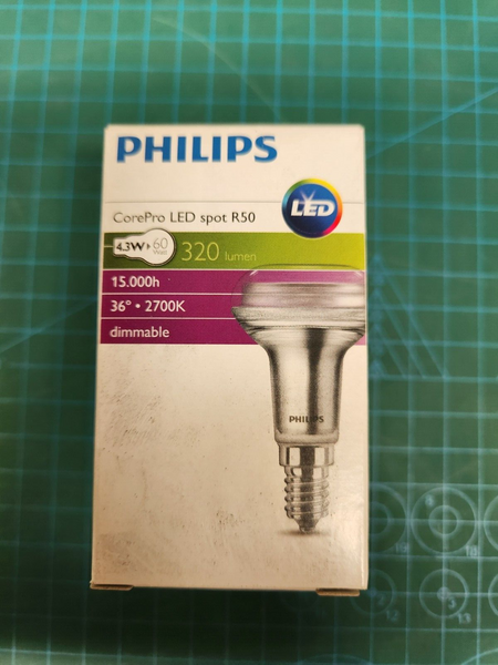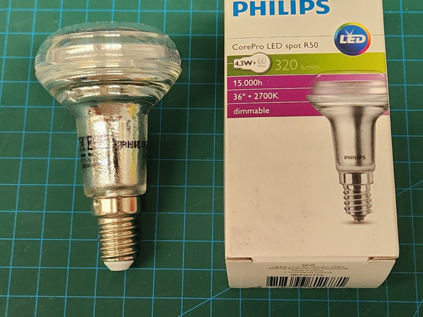 Philips Lighting E14 LED Reflector Bulb - Part No. 929001891202 Specifications Brand Philips Lighting Lamp Base E14 Wattage 4.3 W Colour Temperature 2700K Incandescent Equivalent Wattage 60W Dimmable Yes Lamp Shape Reflector Colour Tone Warm White Voltage Rating 220 →...View more