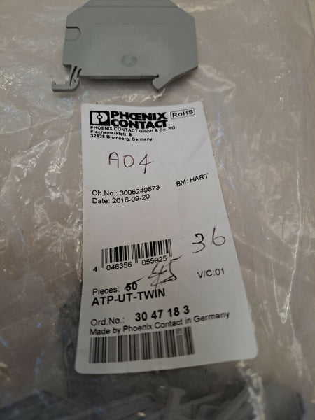 Phoenix Contact 3047183 ATP-UT-TWIN Partition Plate - Pack of 10 - Brand new item, still in OEM packaging  - Check out the images for more product details Product details: Partition plate, length: 62.1 mm, width: 2.2 mm, height: 52.5 mm,...View more