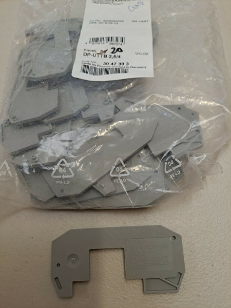 Phoenix Contact 3047303 DP-UTTB 2.5/4 Spacer Plate for Terminal Block - Brand new item, still in OEM packaging  - Check out the images for more product details Product details: Phoenix Contact UT Terminals All metal parts are of high strength...View more