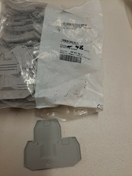 Phoenix Contact 3047293 End Cover - D-UTTB 2.5-4, 10 Pcs per pack - Brand new item, still in OEM packaging - Check out the images for more product details Product details: End cover, length: 69.9 mm, width: 2.2 mm, height: 57.5...View more