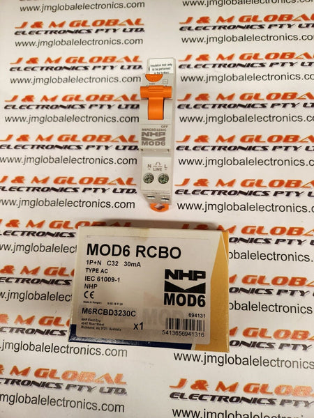 RCBO 1P-D 6KA 30MA 32A MOD-C - NHP -  M6RCBD3230CPRODUCT DETAILS: RCBO 1P-D 6KA 30MA 32A MOD-C RCBO MOD6 1P+N 6kA C CURVE 30mA TYPE A- Complies with AS/NZS 61009 (RCBOs)- MOD6 RCBOs feature 6kA short circuit rating- Compact double...View more