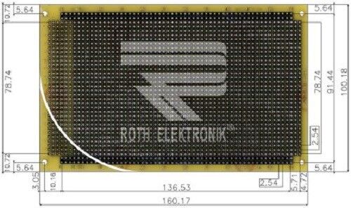 Roth Elektronik RE321-LF, Double Sided DIN 41612 C Matrix Board FR4 with 36 x 55 1mm Holes, 2.54 x 2.54mm Pitch, 160 x 100 x 1.5mm - Brand new item, still in OEM packaging  - Check out the images for...View more