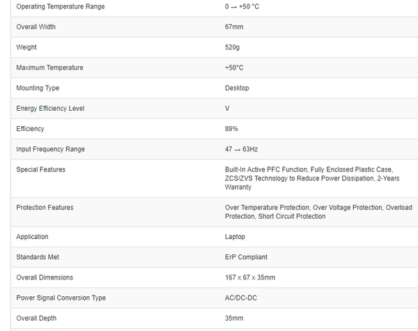 RS Pro AS-120P-20 20V 6A DC Power Supply for Laptop, C14 Connector - Brand New