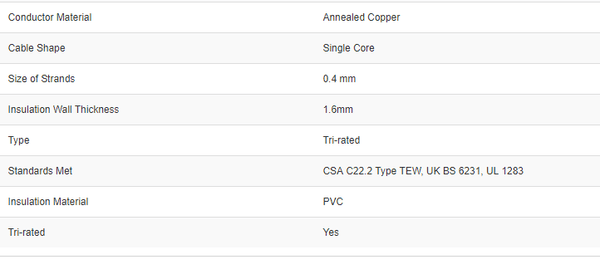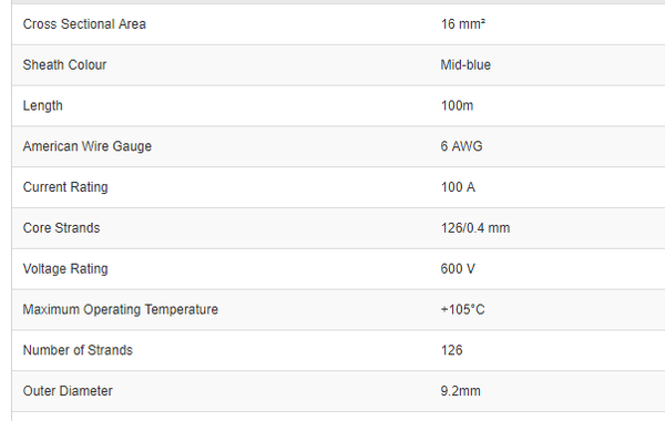 RS Pro 7-160TRI-BE100R Mid-blue Tri-rated Cable, 16 mm² CSA, 600 V, 100 A, 100m - Brand new item, still in OEM packaging  - Check out the images for more product details Product details A tinned copper stranded conductor covered with...View more