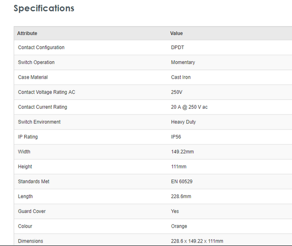 RS PRO 511-B2 Heavy Duty Foot Switch, Cast Iron Momentary DPDT 20 A @ 250 V ac 250V IP56 - Brand new item, still in OEM packaging  - Check out the images for more product details Product details Contact rating...View more