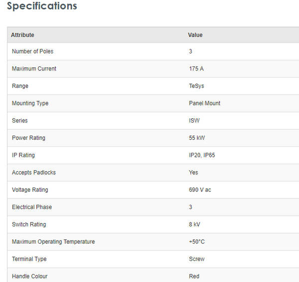 Schneider VCF6 3 Pole Panel Mount Non Fused Isolator Switch, 175 A, 55 kW, IP20, IP65 - Brand new item, still in OEM packaging  - Check out the images for more product details Product details Adaptable with simple attachment of...View more