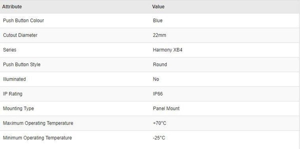 Schneider Electric 7469403 Harmony XB4 Blue Push Button - New - Brand new item, still in OEM packaging  - Check out the images for more product details Product details: - Flush Reset Push button XB4 Metal Range - Flush Reset...View more