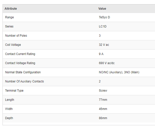 Schneider Electric Tesys 3 Pole Contactor, 3NO (Main) - LC1D09C7 Brand New in OEM Packaging! Model: Schneider Electric LC1D09C7 Tesys D LC1D 3 Pole Contactor, 3NO (Main), NO/NC (Auxiliary), 9 A, 32 V ac Coil Condition: Brand new and unused,...View more