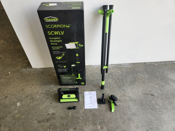 SCORPION WORKLIGHT VERSA, RECHARGEABLE, 40W, IP54-TRADER, SCWLVPRODUCT DETAILS:The Worklight features a total of 3200 lumen output while running on battery. The product can provide light for up to 6 hours, making it ideal for work sites.MANUFACTURER: TRADER PART NUMBER: SCWLV...View more
