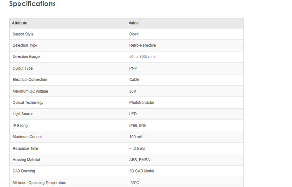 Sick WTE11-2P1132 Retro-reflective Photoelectric Sensor 40 → 1000 mm Detection Range PNP IP66, IP67 Block Style WTE11-2P1132 - Brand new item, still in OEM packaging  - Check out the images for more product details Product details A range of SICK...View more