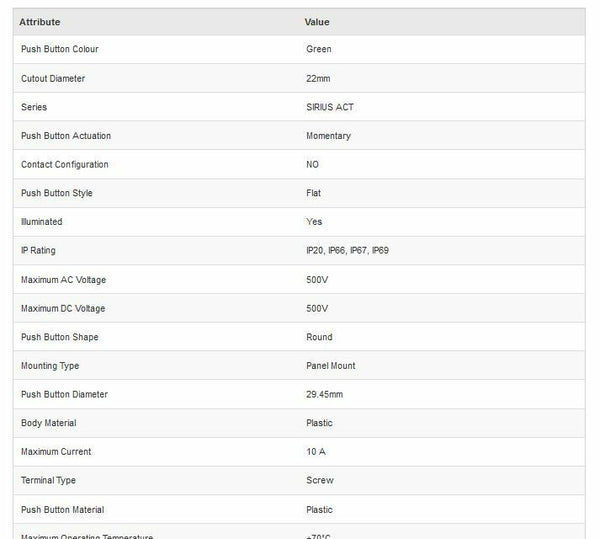 Siemens 3SU1102-0AB40-1BA0 SIRIUS ACT Illuminated Green Push Button  - New - Brand new item, still in OEM packaging  - Check out the images for more product details Product details: 22 mm Push Button Complete Units, PlasticSiemens extremely rugged IP69K push...View more