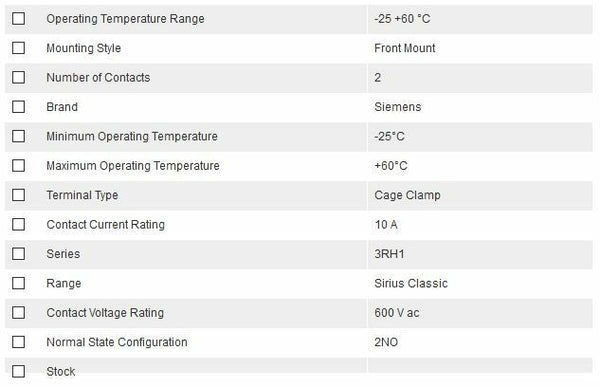 Siemens 3RH1911-1MA20, Sirius Classic Auxiliary Contact - 2NO (2), Front Mount, 10 A - Brand new item, still in OEM packaging  - Check out the images for more product details Product details:- Auxiliary Contacts - 3RH RangeSiemens range of auxiliary...View more