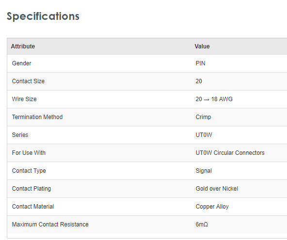 Souriau size 20 PIN Crimp Contact for use w/ UT0W Circular Connectors - RM18W3K
