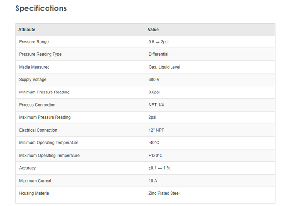 Square D 9012 GAW-1 Gas, Liquid Level Differential Pressure Switch 0.6 → 2psi, 600 V, NPT 1/4 process connection - Brand new item, still in OEM packaging  - Check out the images for more product details Product details The 9012G...View more