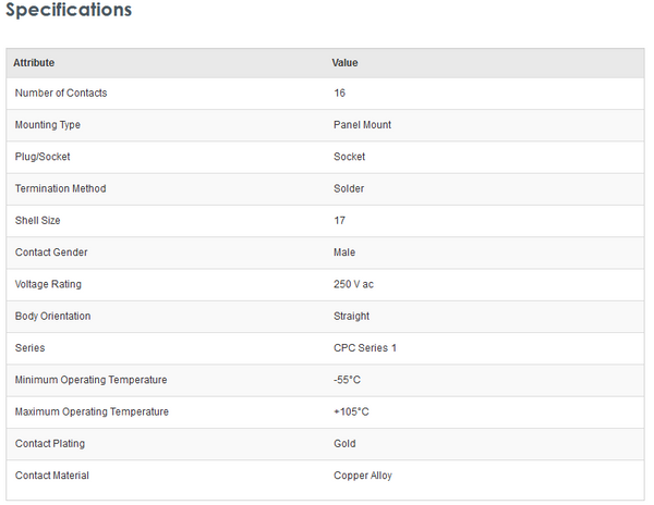 TE Connectivity 1-207303-3 CPC Series 1 Series Panel Mount Connector, 16 Pole Socket - New - Brand new item, still in OEM packaging  - Check out the images for more product details Product details:- TE Connectivity Series 1 CPC Connectors,...View more